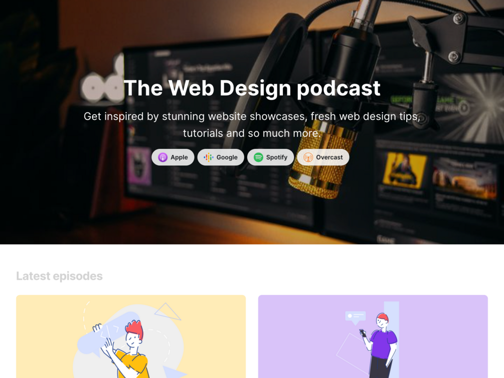 This template provides an overview of the latest or featured episodes, and links to all relevant podcast platforms. It's focused on giving your visitors a brief overview of the podcast and giving a reason to subscribe.